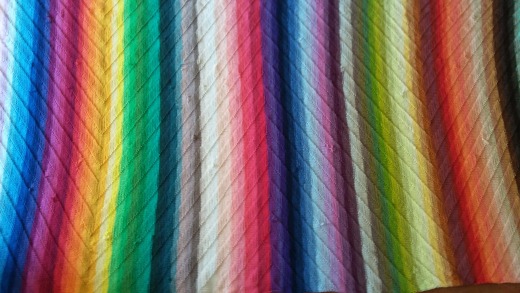 Toch kan ik in totaal 4 foto's laten zien en dat doe ik graag, want ik vind het zo leuk dat ze aan het borduren is én dat ze zo'n bijzondere vakantiesouvenir maakte.