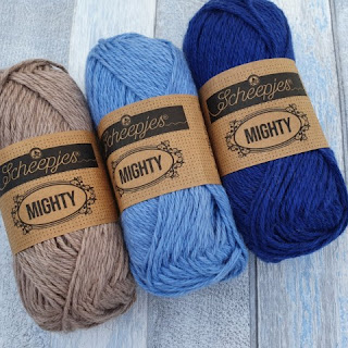 Ik gebruikte Scheepjes Mighty. Deze mooie kleuren heten Oak (752), River(756) en Ocean (757). Ik vertelde in deze blog meer over dit stoere garen.